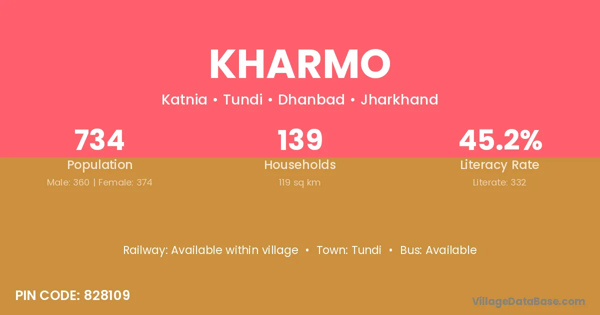 Kharmo village is located in the Gobindpur Subdivision of the Dhanbad district in Jharkhand .