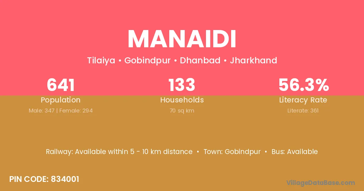 Gobindpur is the nearest town to Manaidi village for major economic activities