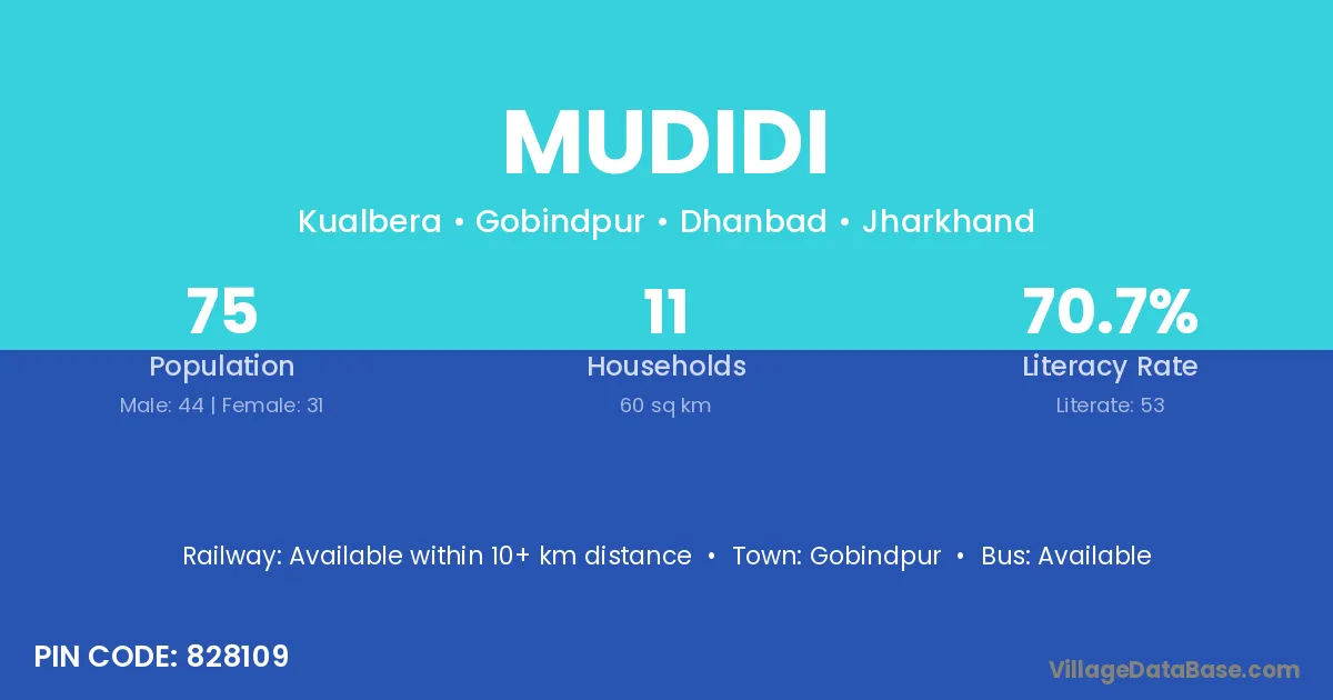 Mudidi village is located in the Gobindpur Subdivision of the Dhanbad district in Jharkhand .