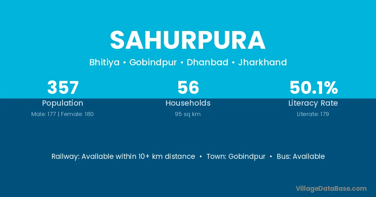 Sahurpura village has a total population of 357 people, of which 177 are males and 180 are females.