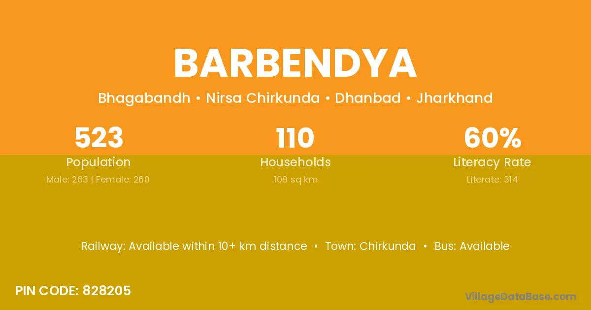 Barbendya village is located in the Nirsa Chirkunda Subdivision of the Dhanbad district in Jharkhand .