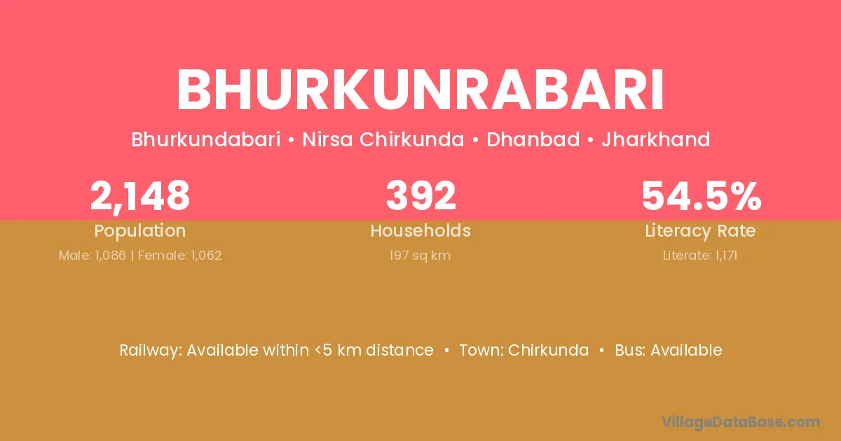 Chirkunda is the nearest town to Bhurkunrabari village for major economic activities