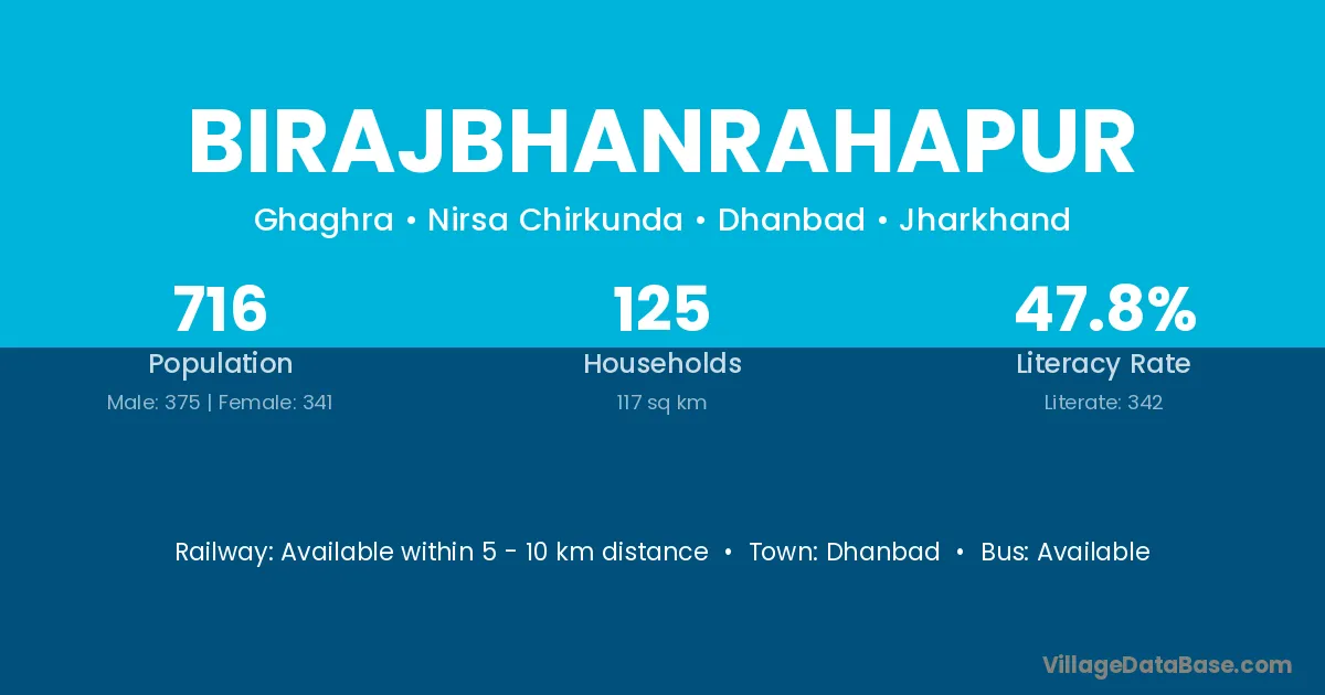 Dhanbad is the nearest town to Birajbhanrahapur village for major economic activities