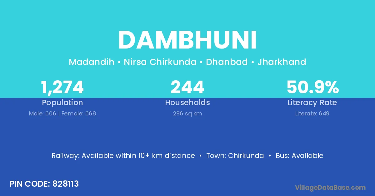 Chirkunda is the nearest town to Dambhuni village for major economic activities