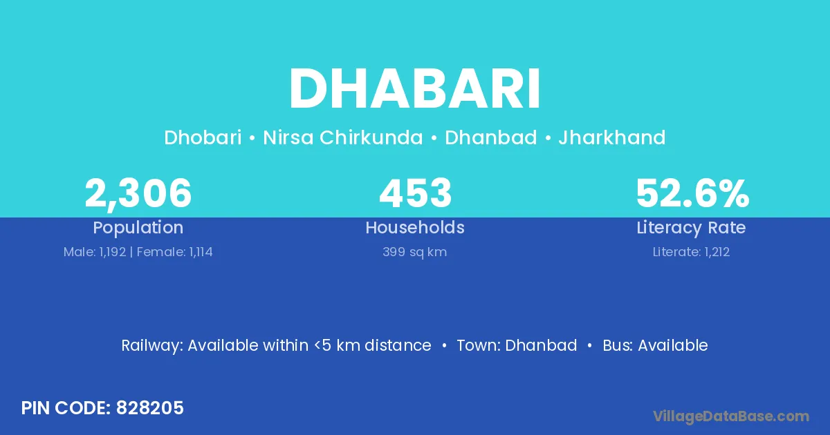 Dhanbad is the nearest town to Dhabari village for major economic activities