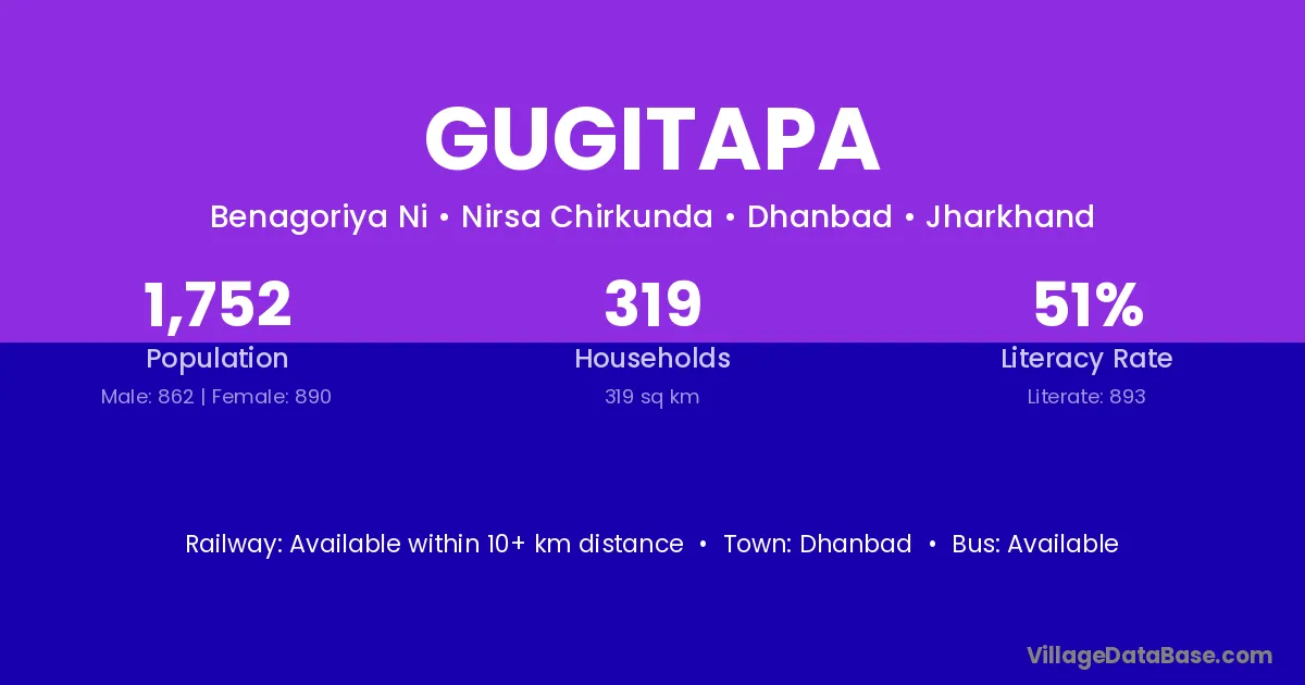 Dhanbad is the nearest town to Gugitapa village for major economic activities
