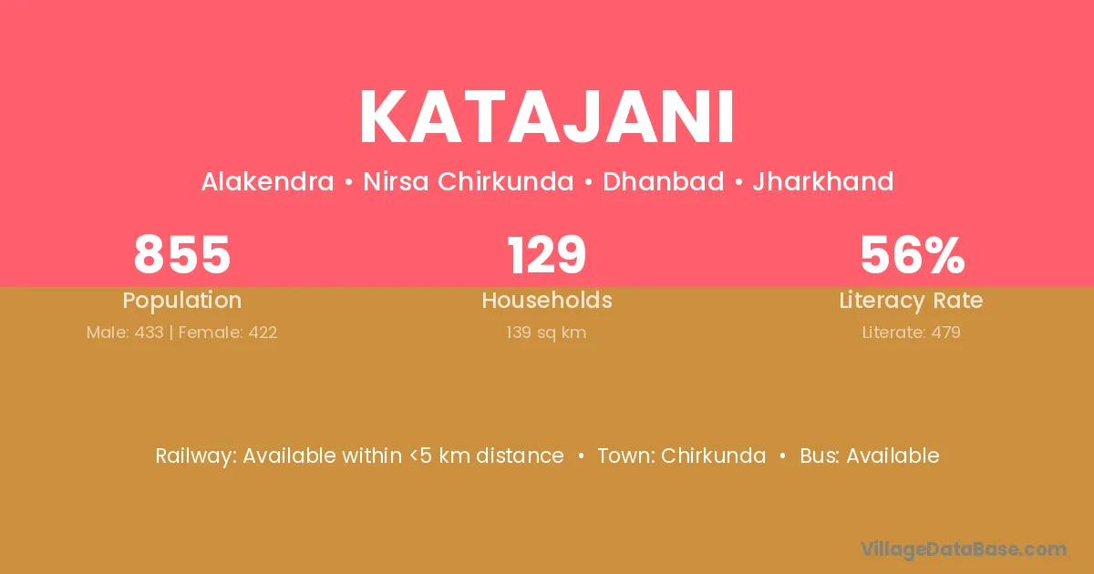 The literacy rate of Katajani village is 56.02%. Male literacy stands at 73.21% and female literacy at 38.39%.