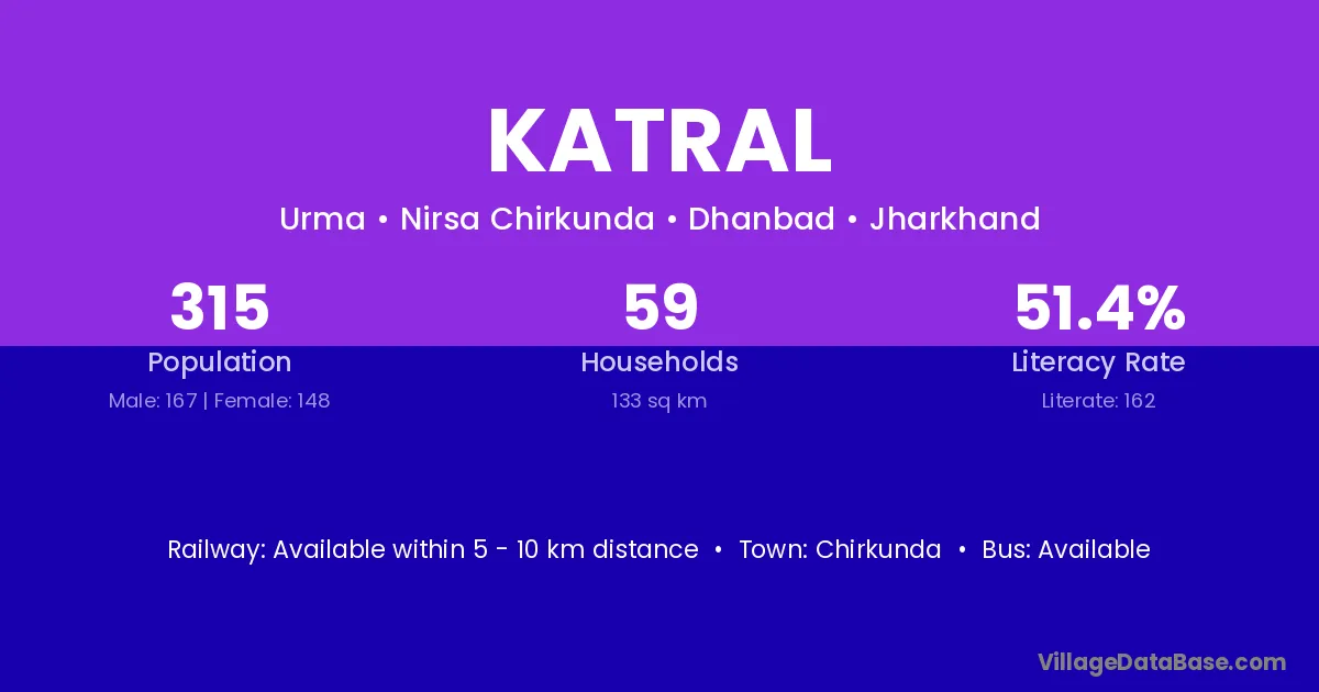 Chirkunda is the nearest town to Katral village for major economic activities