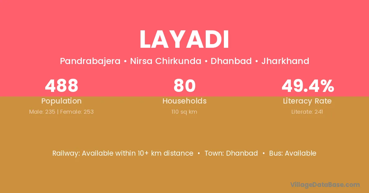 Dhanbad is the nearest town to Layadi village for major economic activities