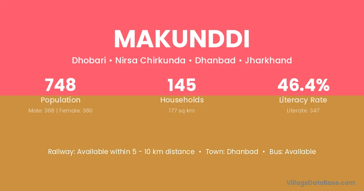 Dhanbad is the nearest town to Makunddi village for major economic activities