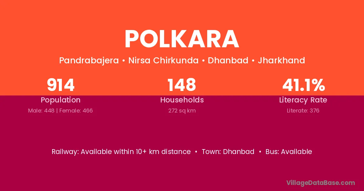 Dhanbad is the nearest town to Polkara village for major economic activities
