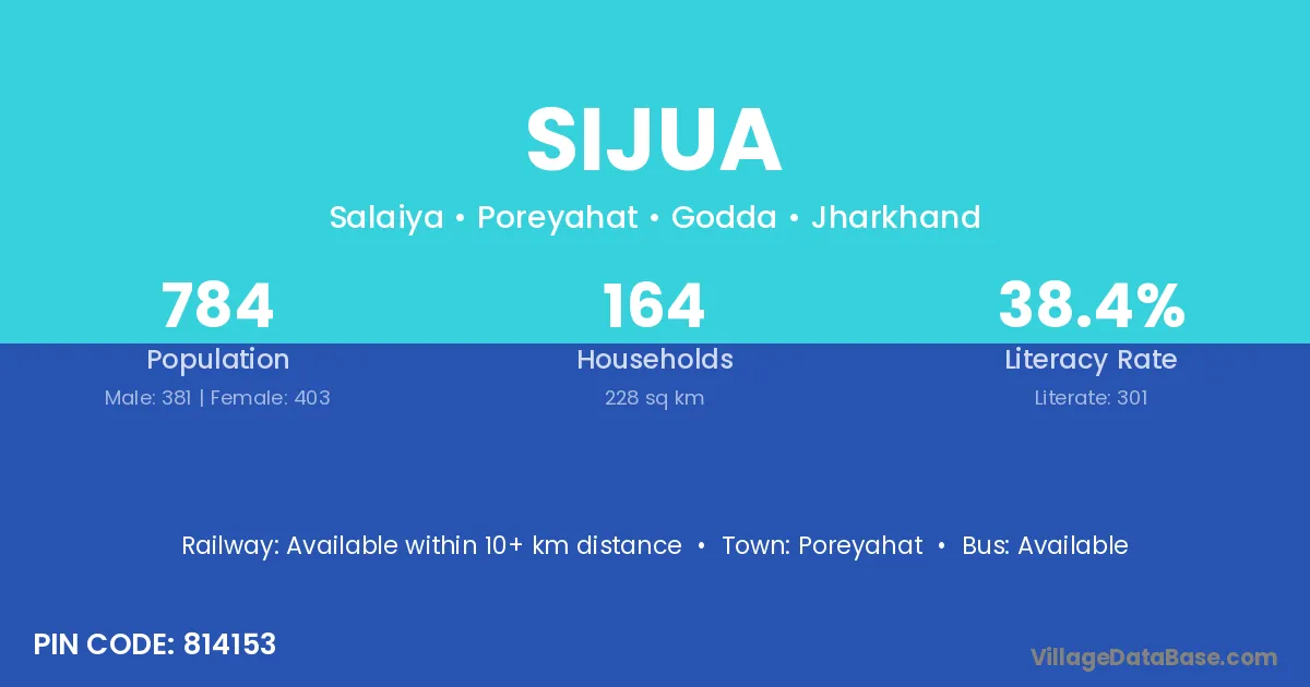 Dhanbad is the nearest town to Sijua village for major economic activities