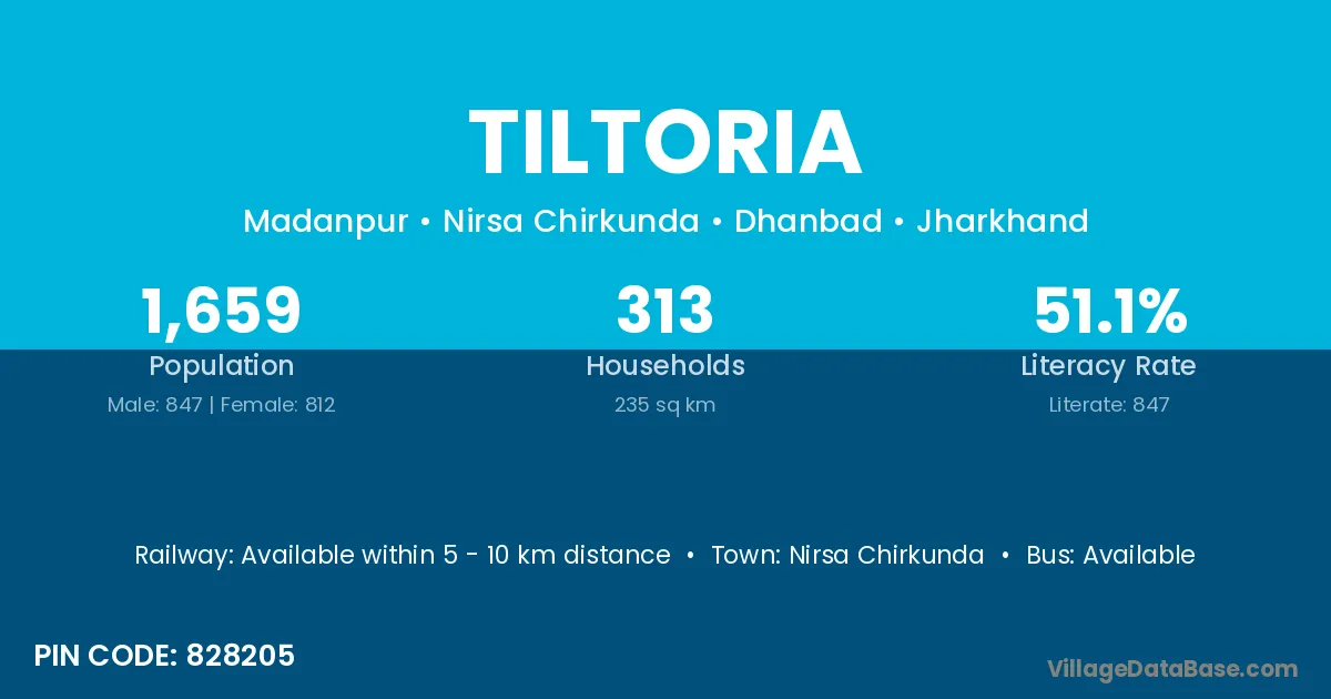 Nirsa Chirkunda is the nearest town to Tiltoria village for major economic activities