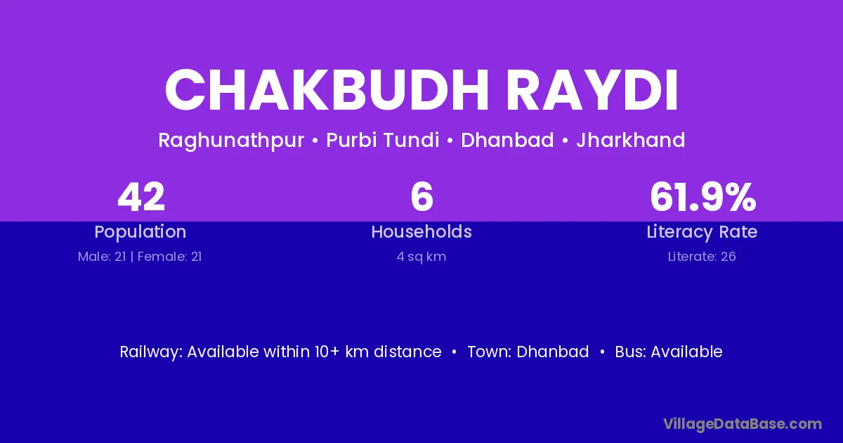 Chakbudh Raydi village is located in the Purbi Tundi Subdivision of the Dhanbad district in Jharkhand .