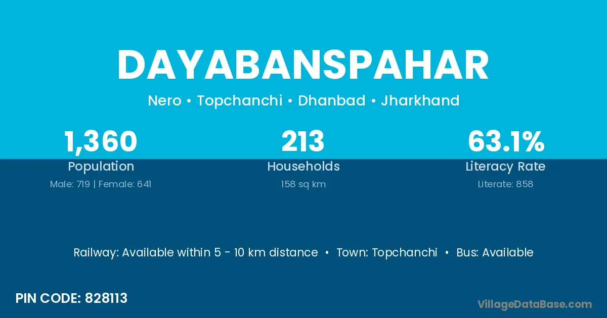 Dayabanspahar village has a total population of 1,360 people, of which 719 are males and 641 are females.
