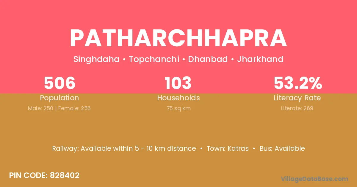 Patharchhapra village has a total population of 506 people, of which 250 are males and 256 are females.