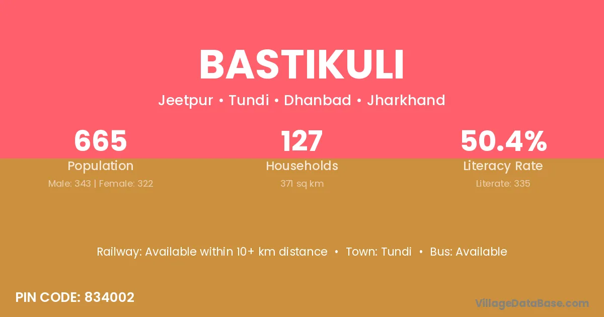 Bastikuli village is located in the Tundi Subdivision of the Dhanbad district in Jharkhand .