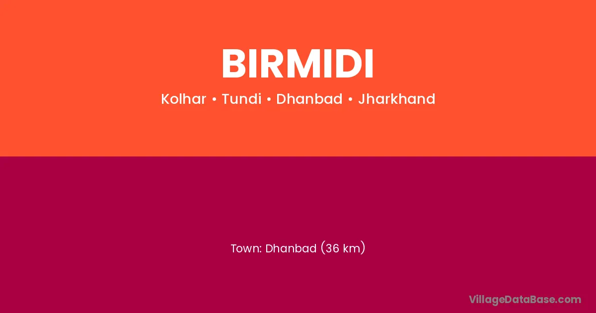 Birmidi village is located in the Tundi Subdivision of the Dhanbad district in Jharkhand .