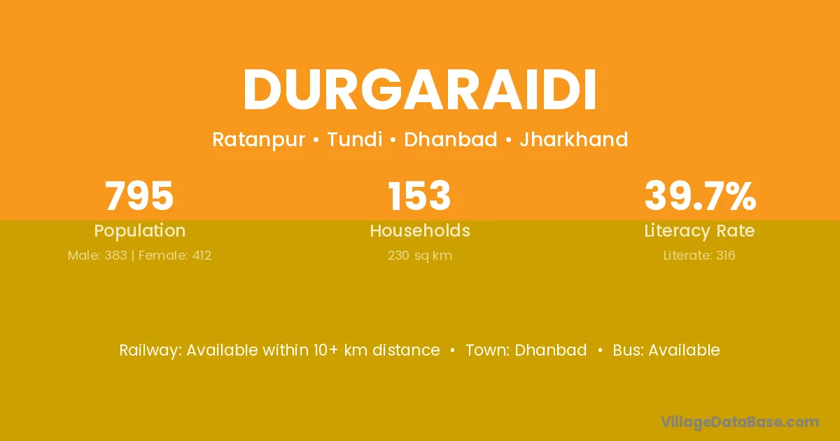 Dhanbad is the nearest town to Durgaraidi village for major economic activities