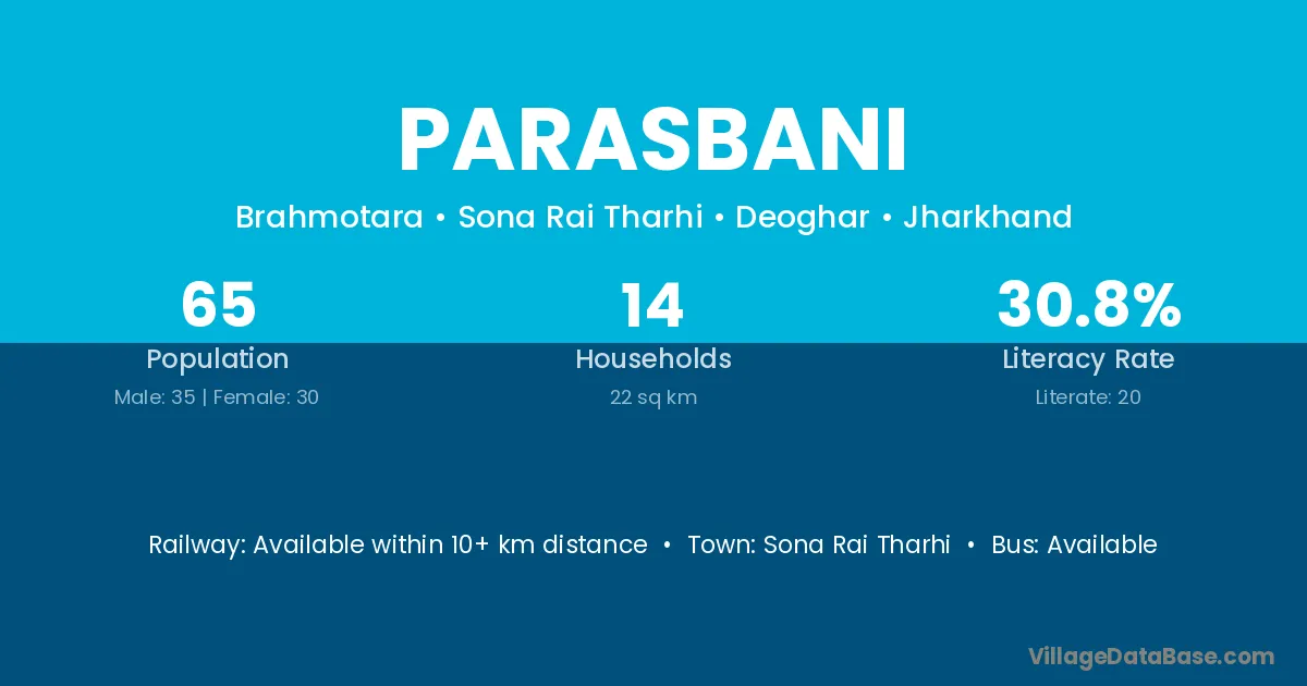 The literacy rate of Parasbani village is 46.60%. Male literacy stands at 59.88% and female literacy at 33.33%.