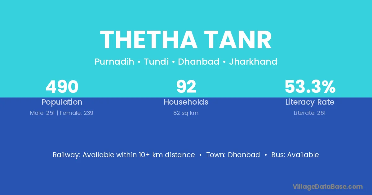 Thetha Tanr village has a total population of 490 people, of which 251 are males and 239 are females.