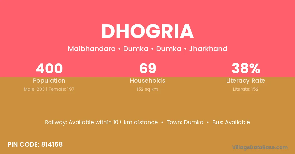 Dumka is the nearest town to Dhogria village for major economic activities