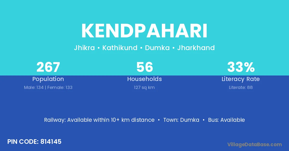 Dumka is the nearest town to Kendpahari village for major economic activities