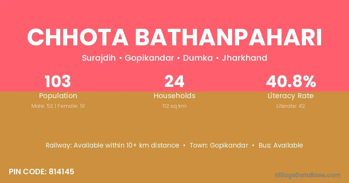 Chhota Bathanpahari village has a total population of 103 people, of which 52 are males and 51 are females.