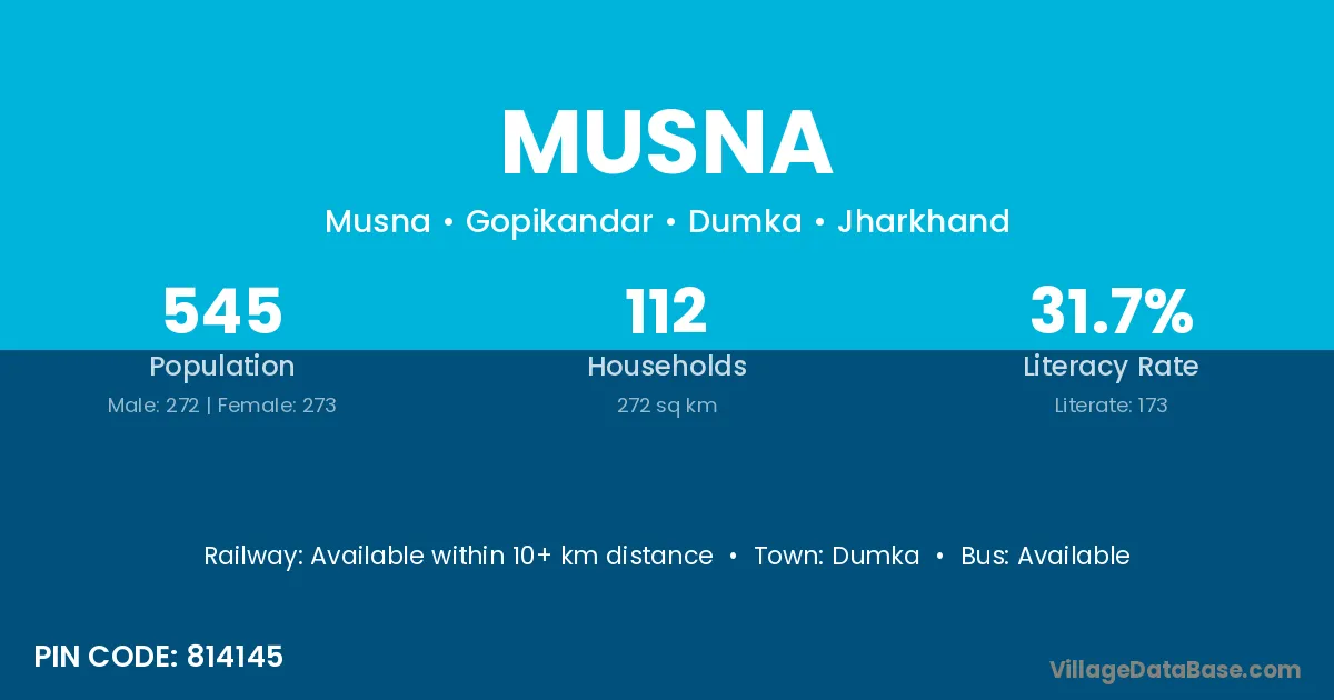 Musna village has a total population of 545 people, of which 272 are males and 273 are females.