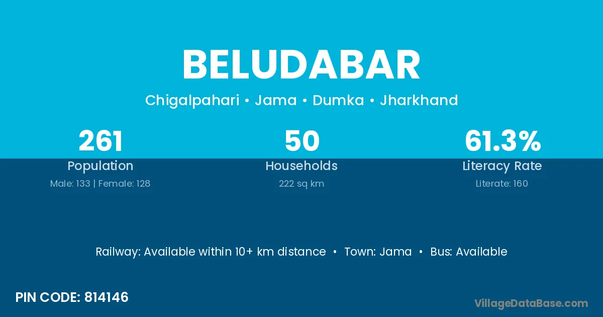 Beludabar village has a total population of 261 people, of which 133 are males and 128 are females.