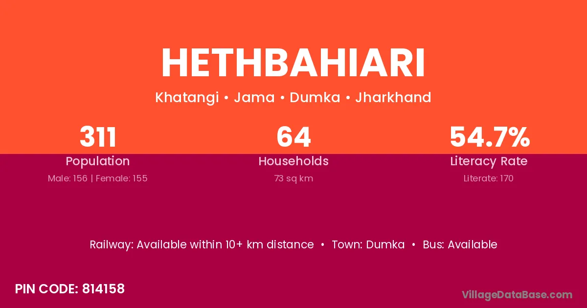 Dumka is the nearest town to Hethbahiari village for major economic activities
