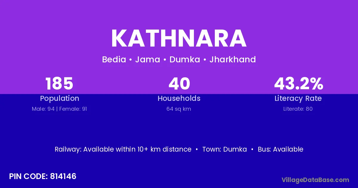 Kathnara village has a total population of 185 people, of which 94 are males and 91 are females.