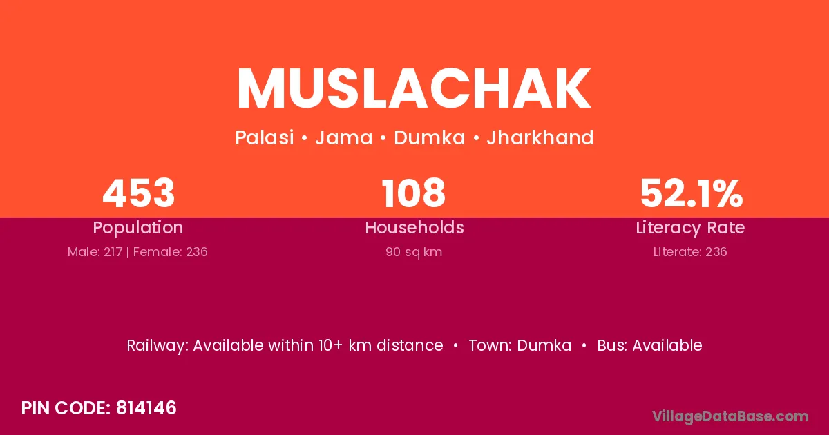 Muslachak village has a total population of 453 people, of which 217 are males and 236 are females.