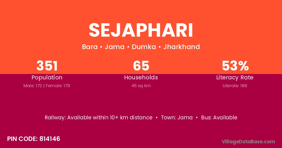 Sejaphari village has a total population of 351 people, of which 172 are males and 179 are females.