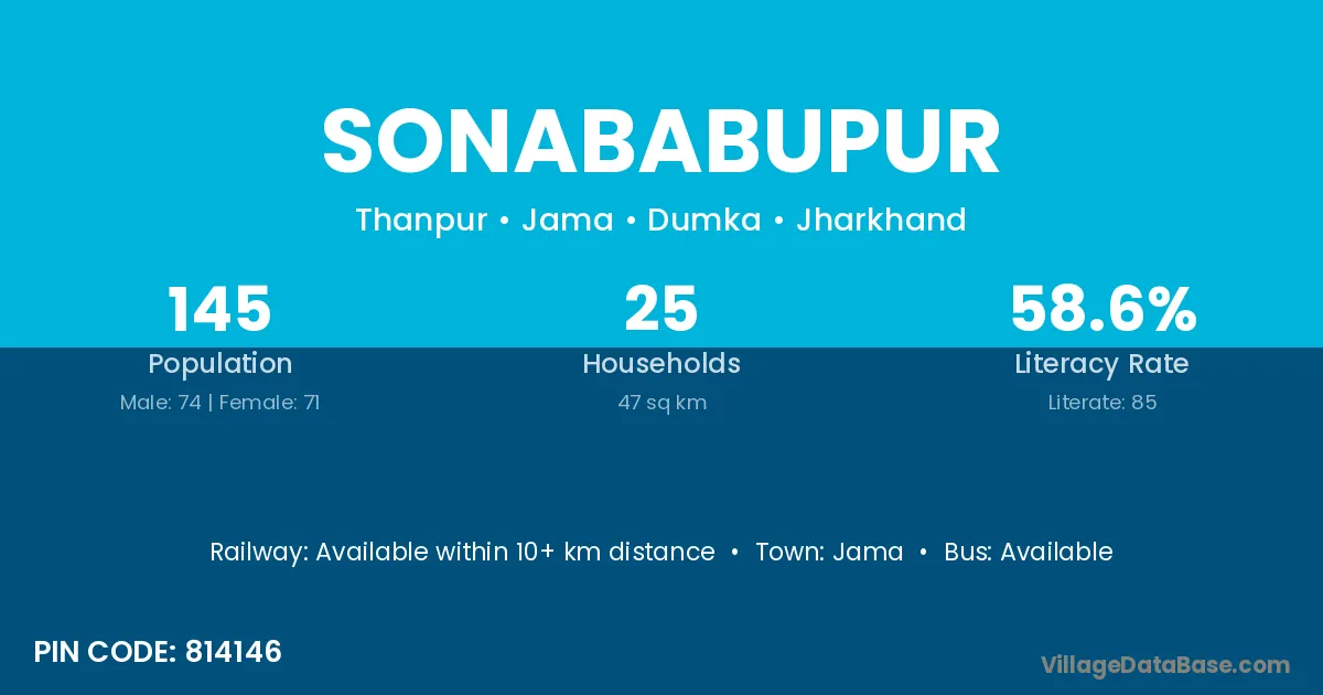 Sonababupur village has a total population of 145 people, of which 74 are males and 71 are females.