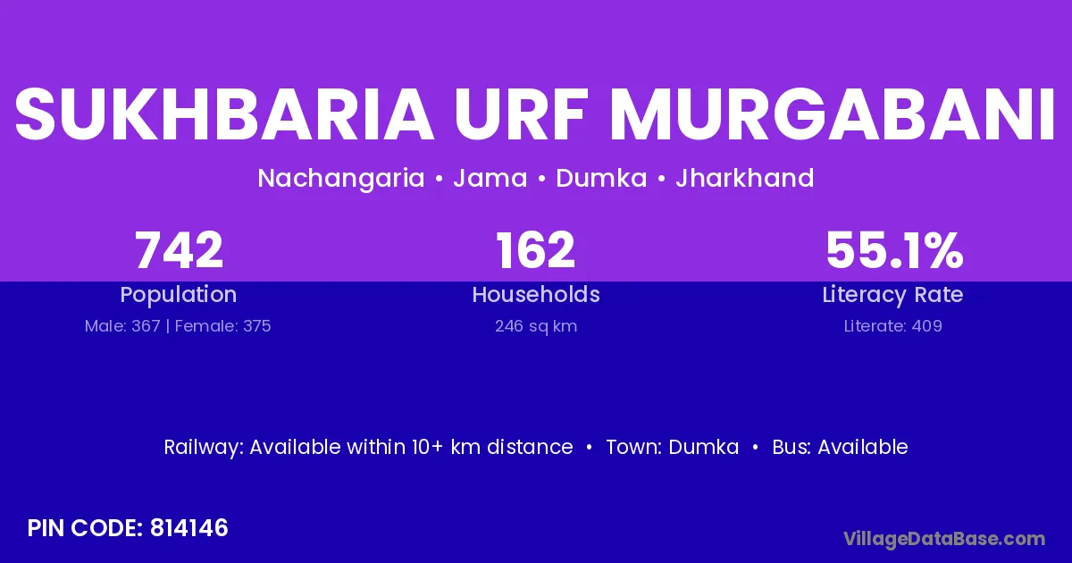 Sukhbaria Urf Murgabani village has a total population of 742 people, of which 367 are males and 375 are females.