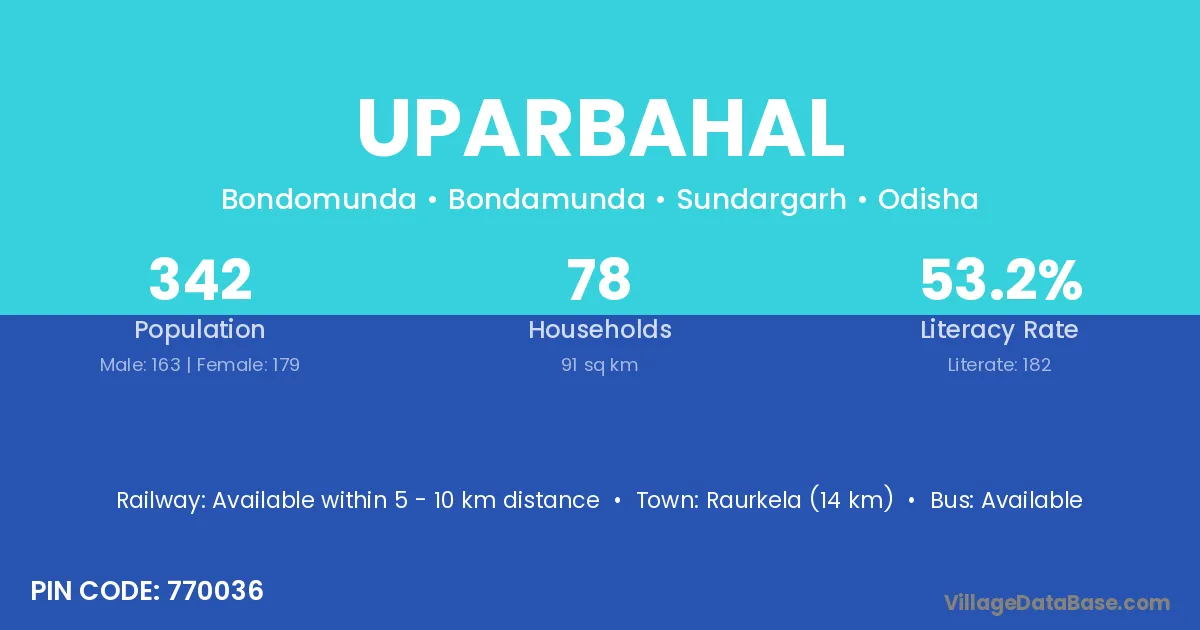 The literacy rate of Uparbahal village is 59.30%. Male literacy stands at 74.09% and female literacy at 43.07%.