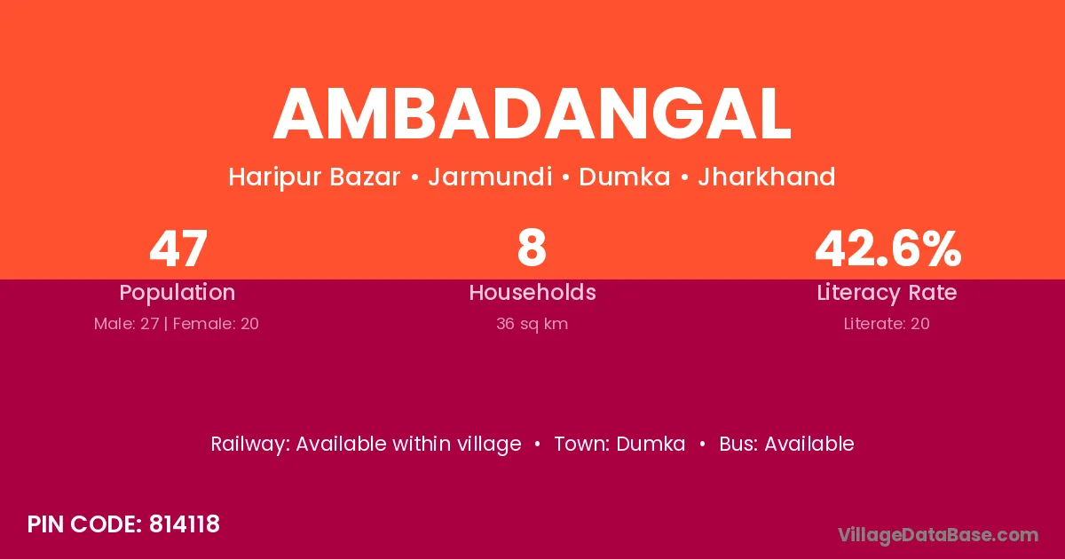 Dumka is the nearest town to Ambadangal village for major economic activities