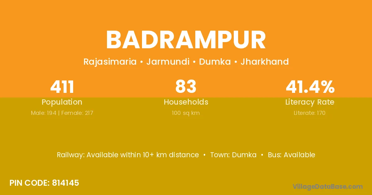 Badrampur village has a total population of 411 people, of which 194 are males and 217 are females.