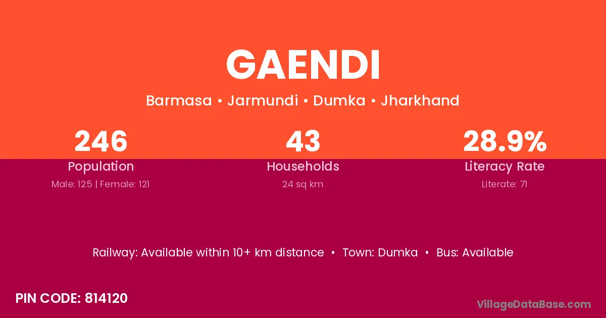 Gaendi village is located in the Jarmundi Subdivision of the Dumka district in Jharkhand .