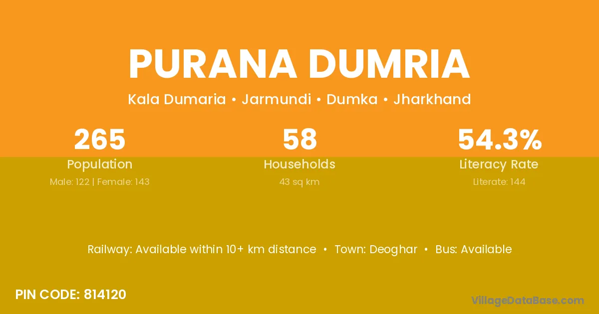 Deoghar is the nearest town to Purana Dumria village for major economic activities