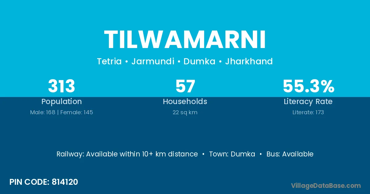 Dumka is the nearest town to Tilwamarni village for major economic activities