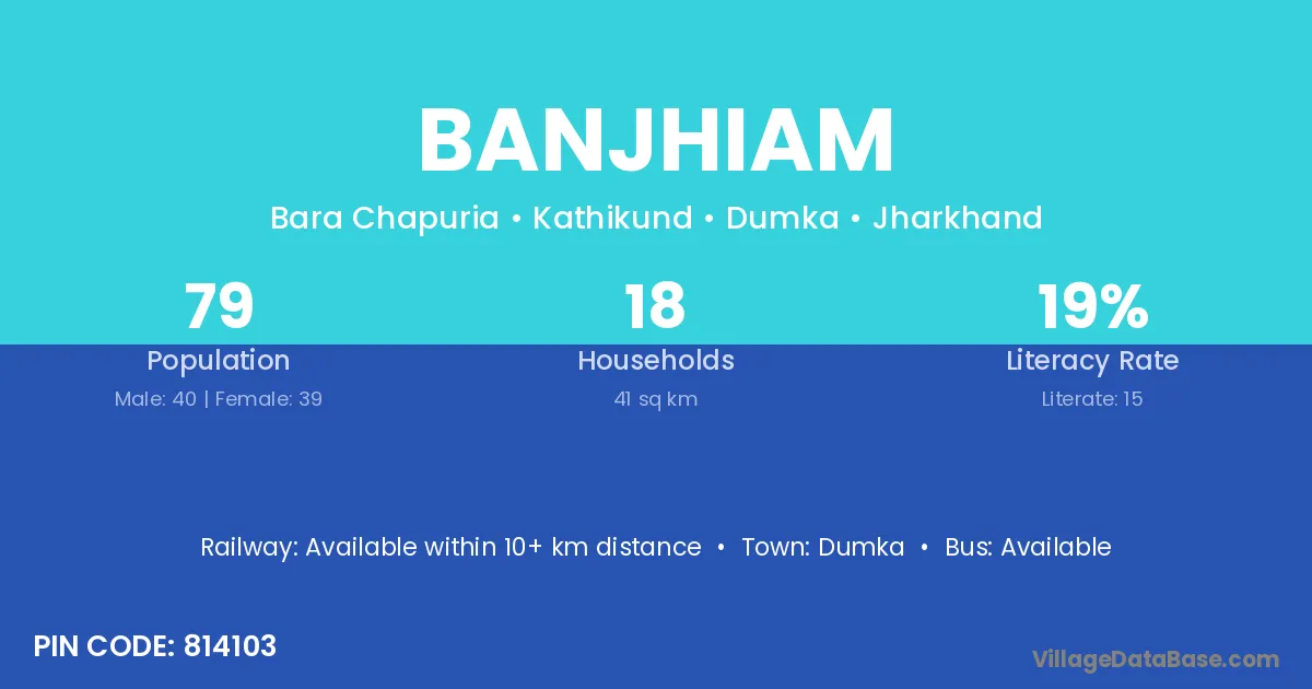 Banjhiam village has a total population of 79 people, of which 40 are males and 39 are females.