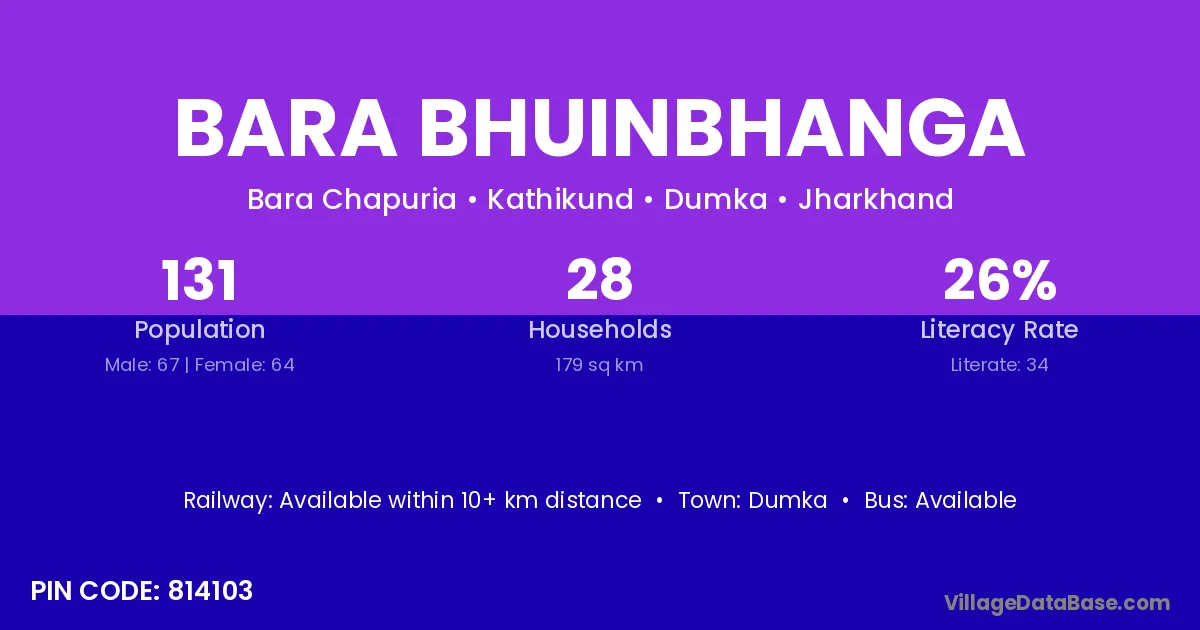 Bara Bhuinbhanga village has a total population of 131 people, of which 67 are males and 64 are females.