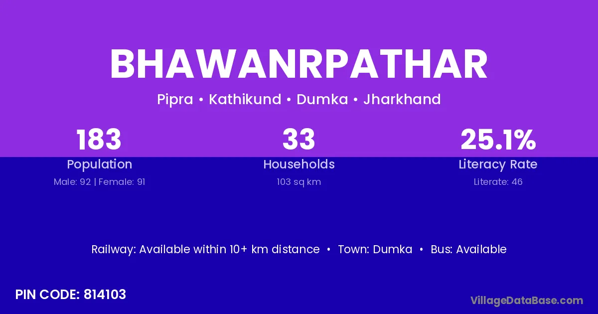 Dumka is the nearest town to Bhawanrpathar village for major economic activities