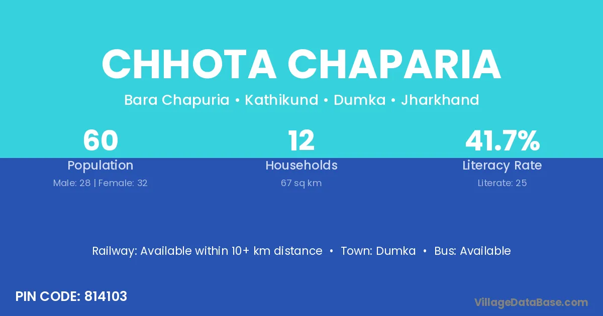 Chhota Chaparia village has a total population of 60 people, of which 28 are males and 32 are females.
