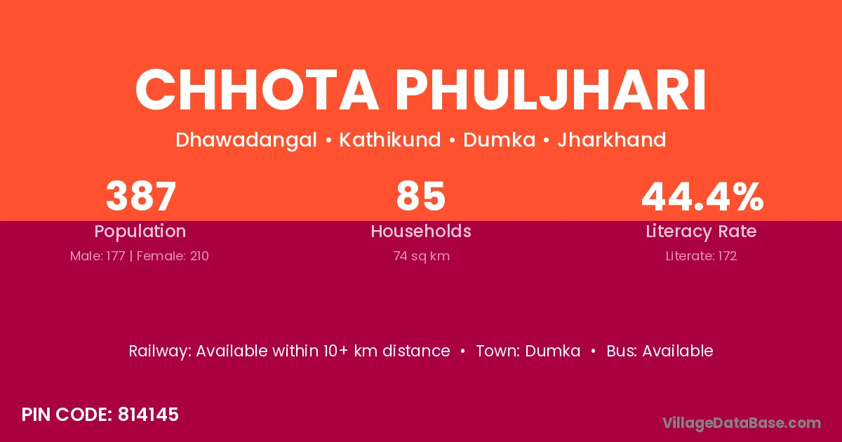 Dumka is the nearest town to Chhota Phuljhari village for major economic activities