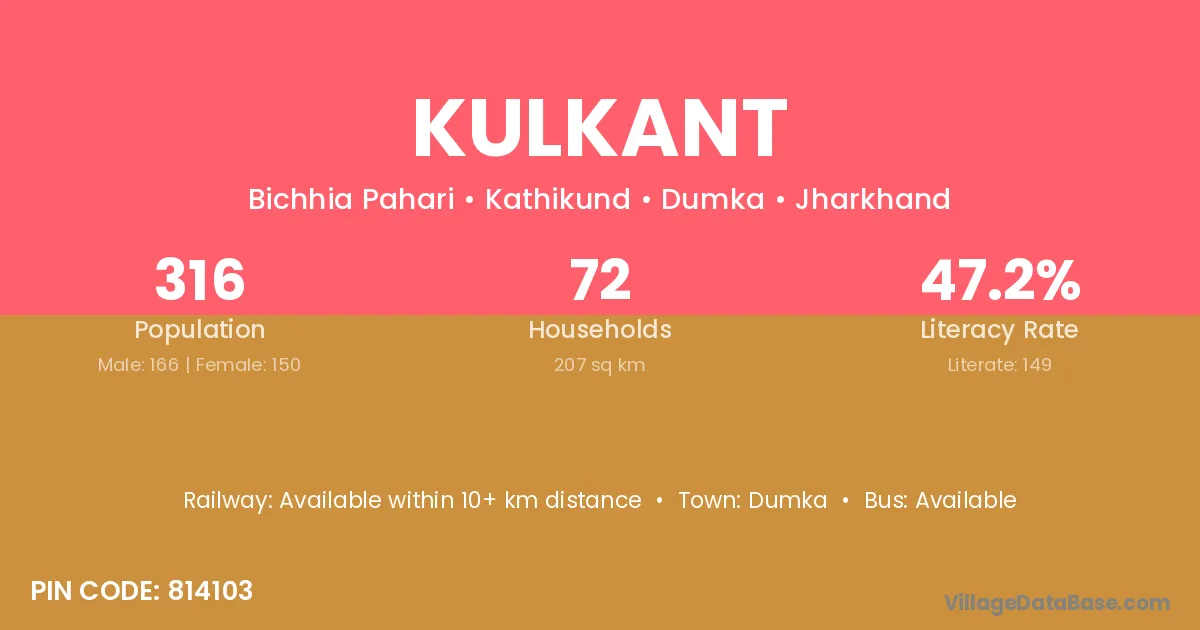 Dumka is the nearest town to Kulkant village for major economic activities