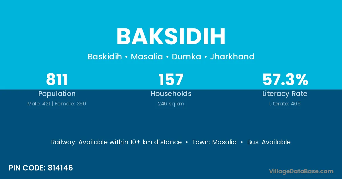 Baksidih village has a total population of 811 people, of which 421 are males and 390 are females.