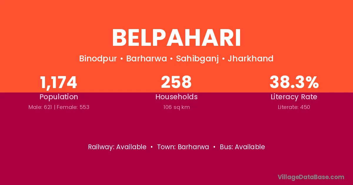 The literacy rate of Belpahari village is 45.13%. Male literacy stands at 46.60% and female literacy at 43.48%.